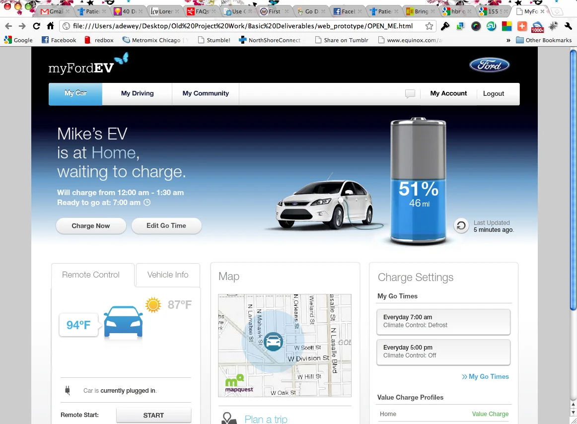 In collaboration with Ford Motor Company, I worked with a team of designers and prototypers to create a connected mobile app for Ford's new Focus EV and Hybrid vehicle owners. The goal of this app was to help relieve anxiety most new electric vehicle owners have around managing battery level and optimizing fuel efficiency and performance while also getting people excited about driving efficiently.